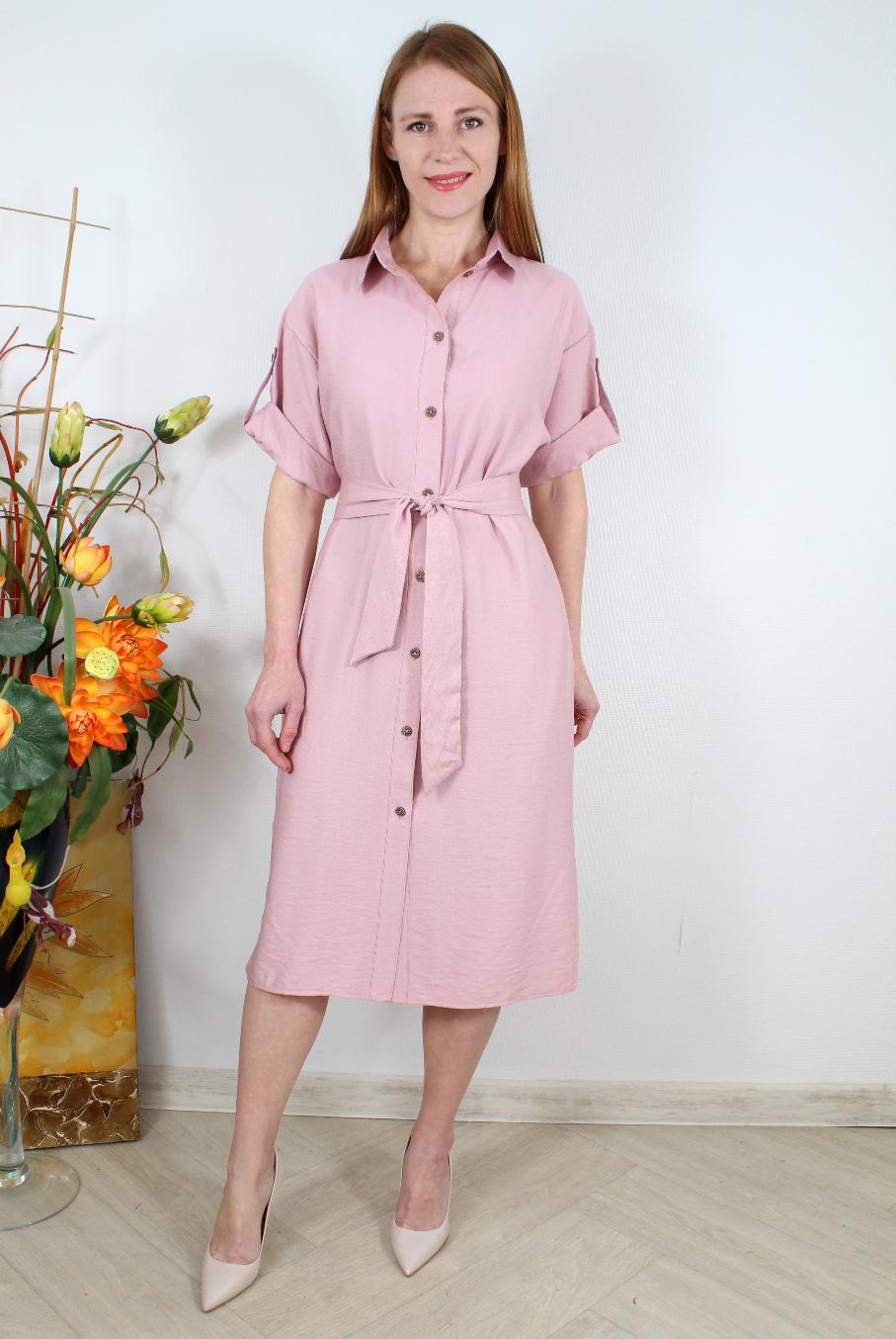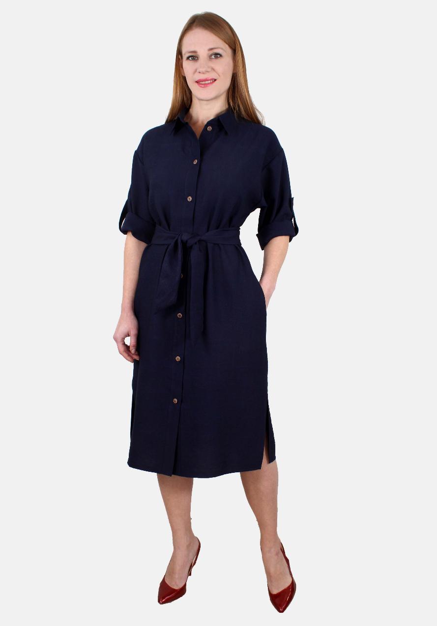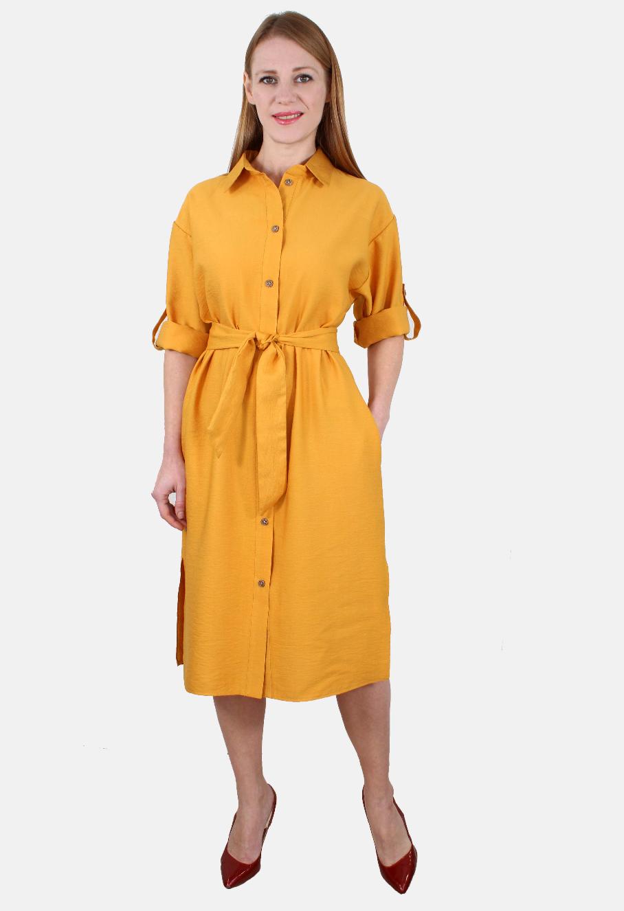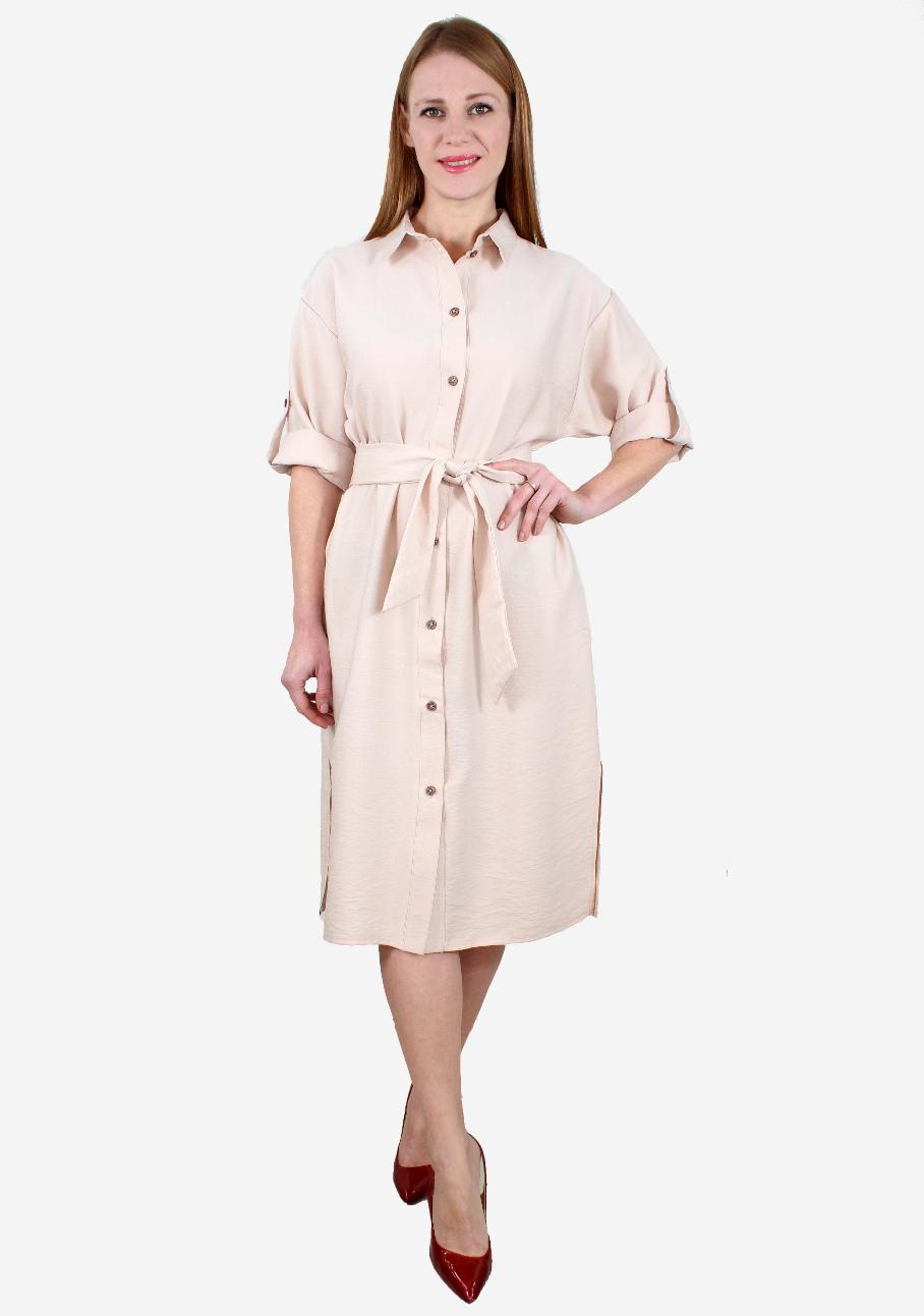 Платье-рубашка с разрезами и поясом оптом