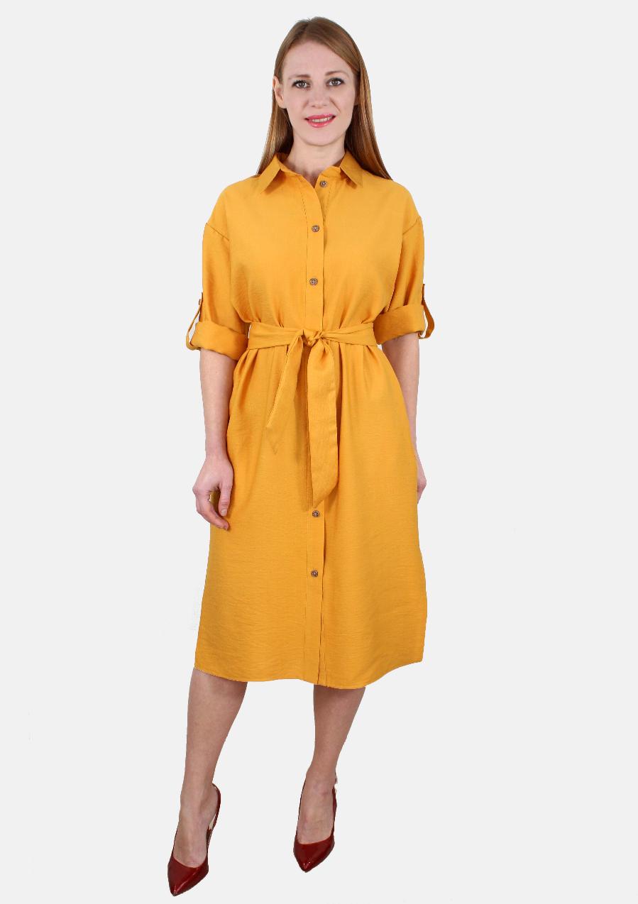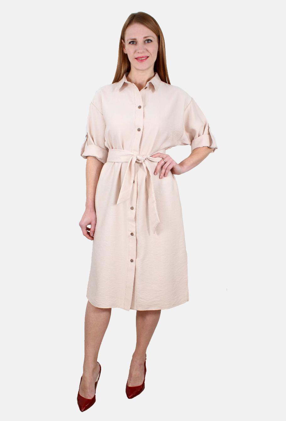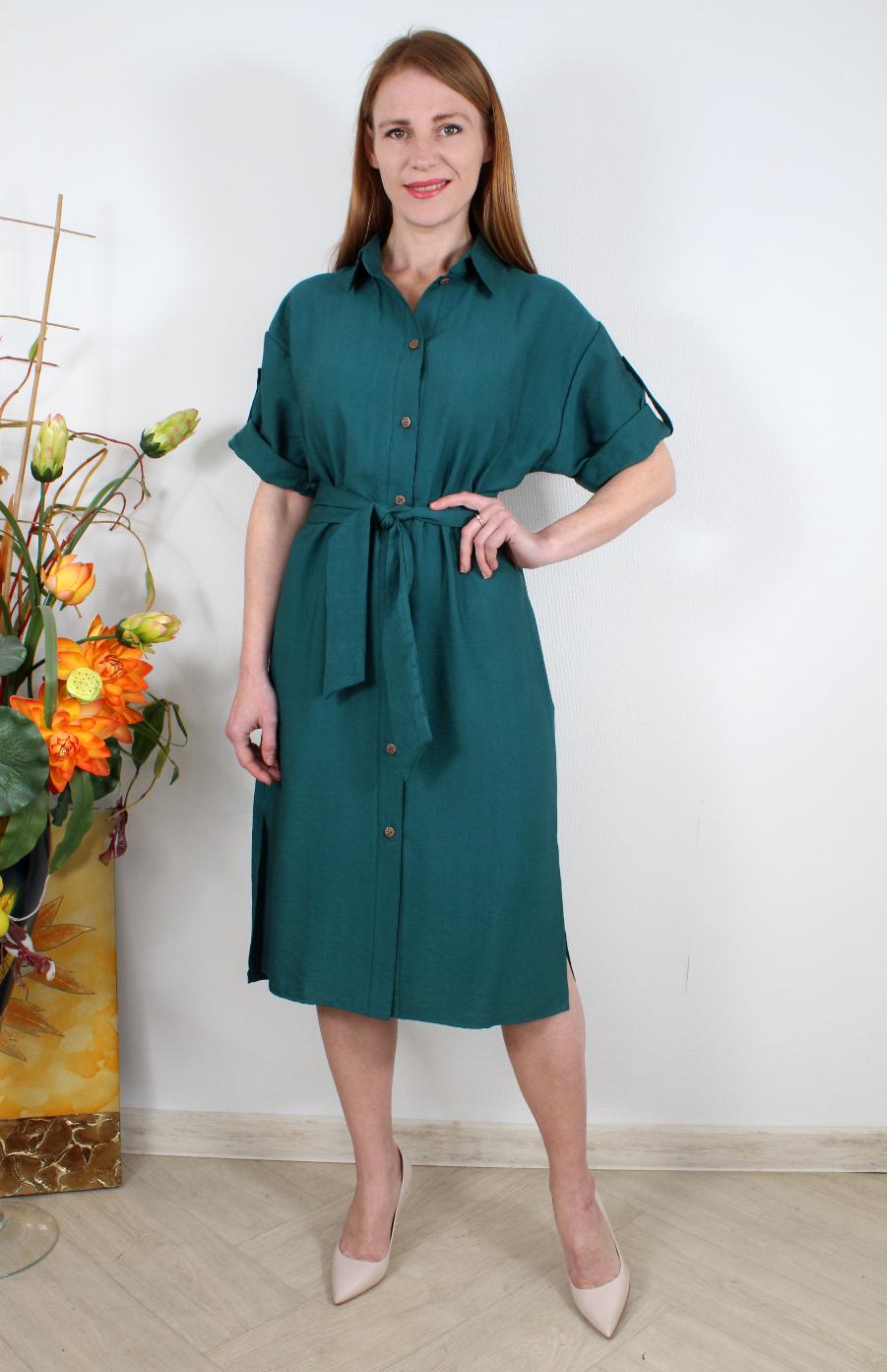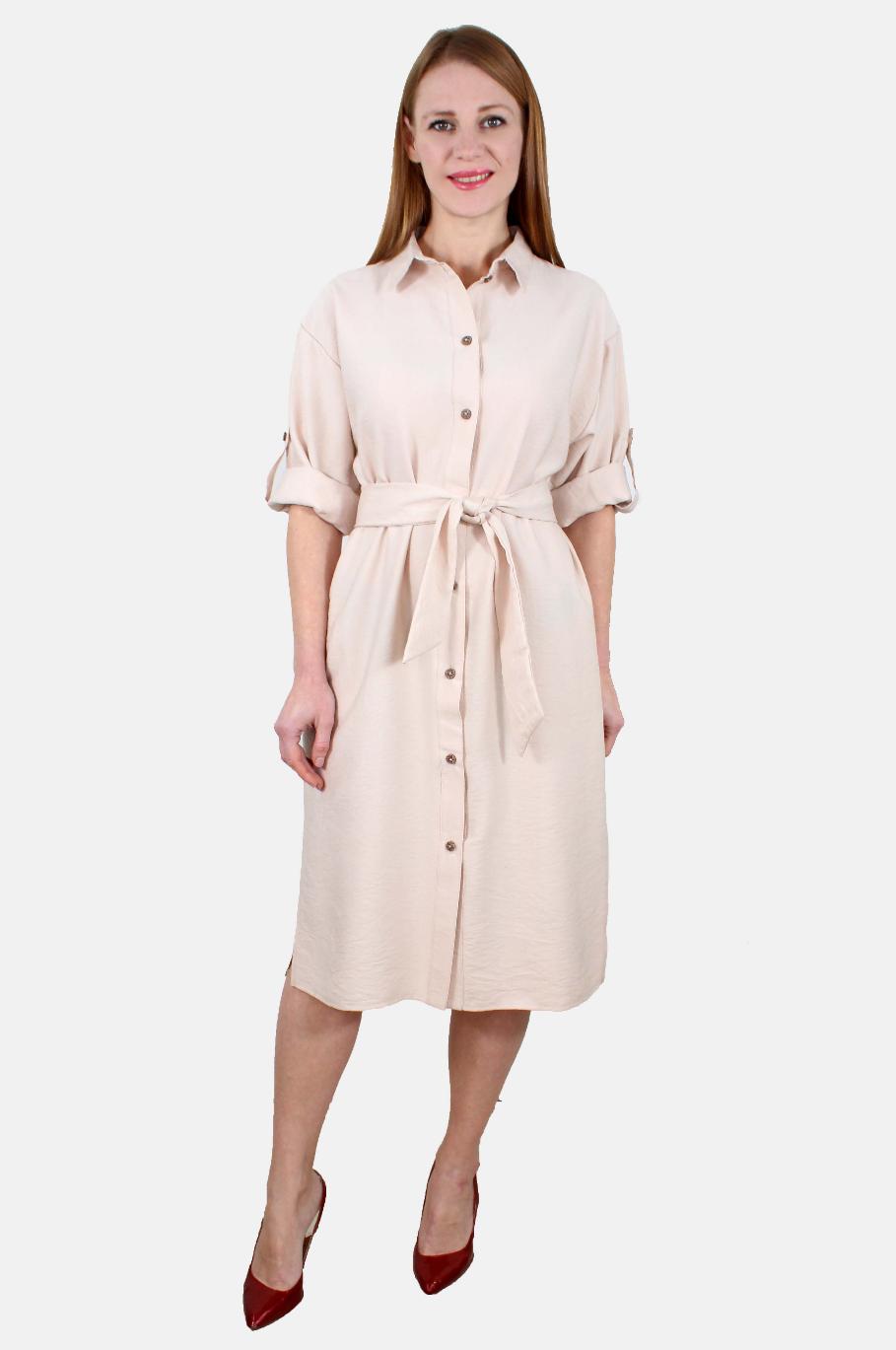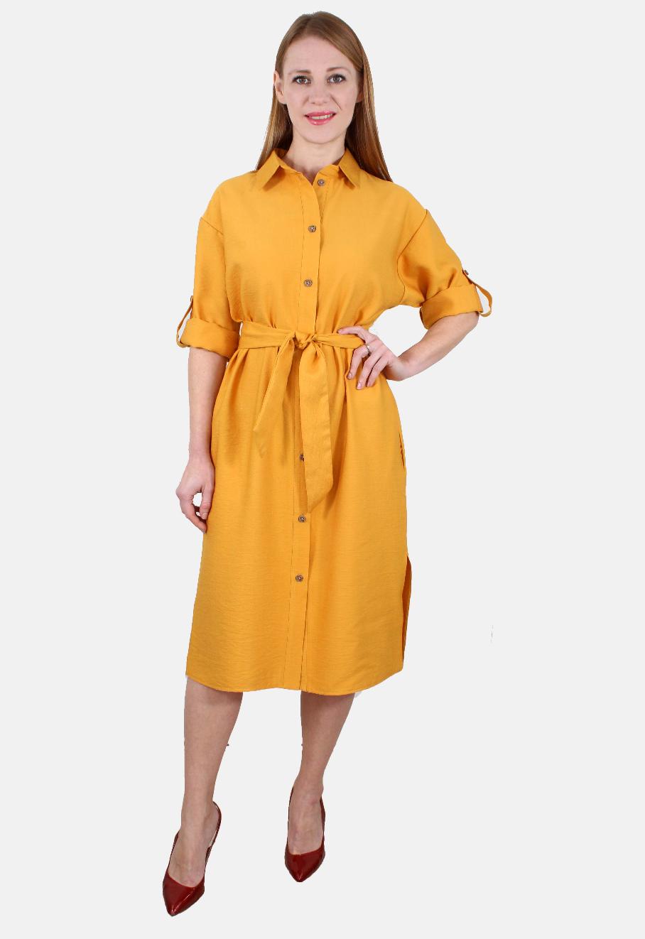 Платье-рубашка с разрезами и поясом оптом