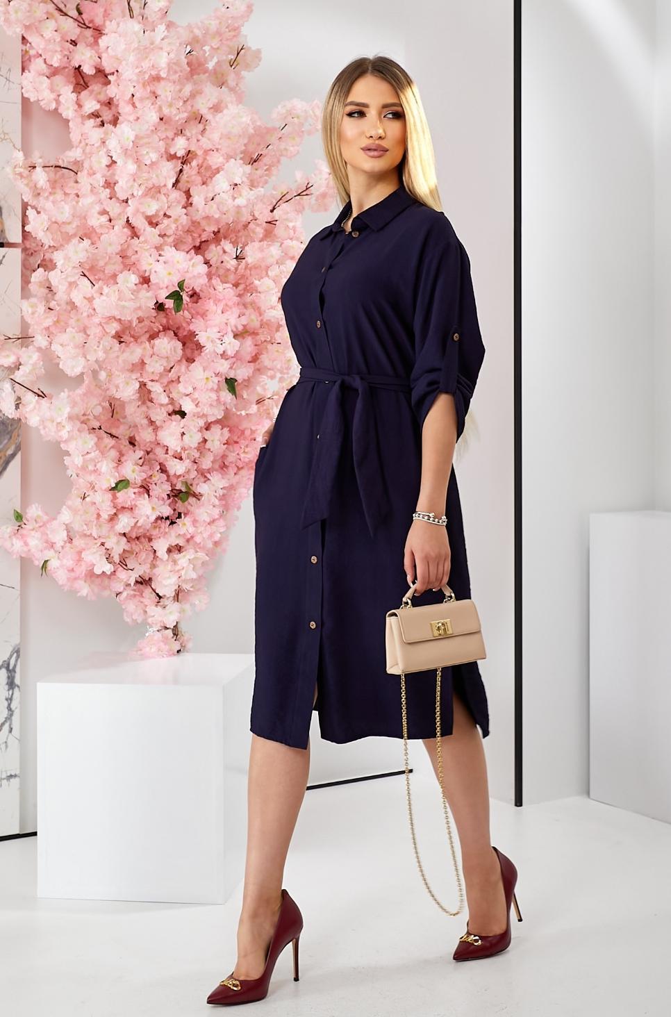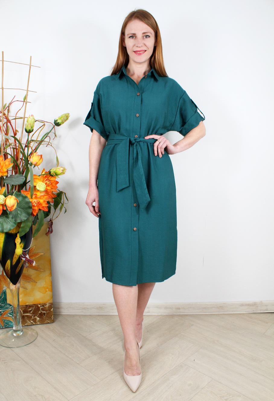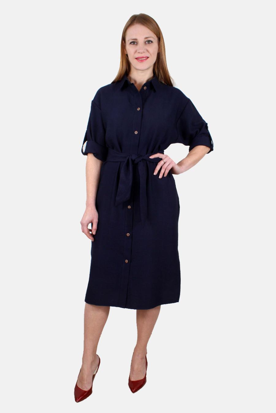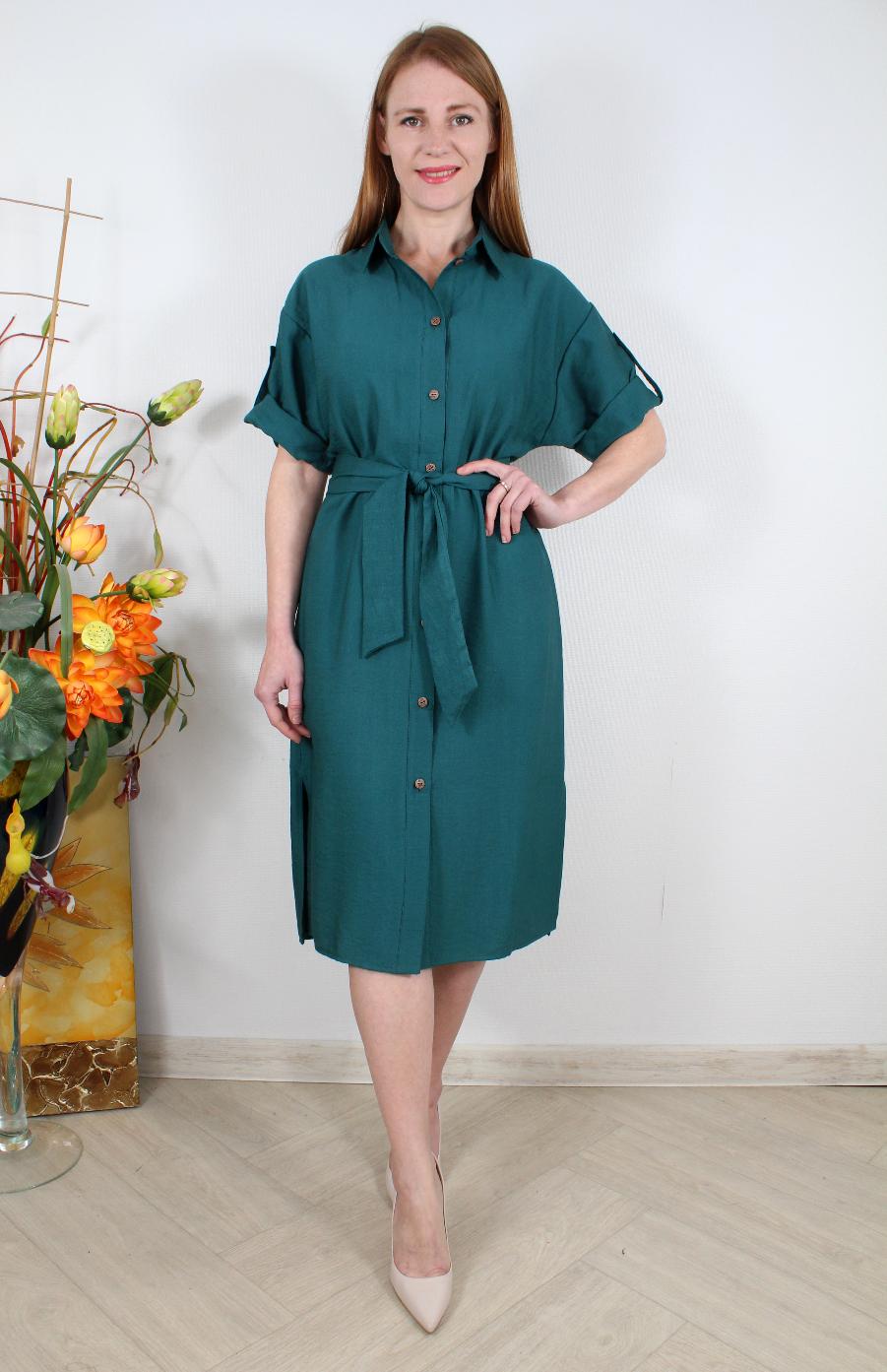Платье-рубашка с разрезами и поясом оптом