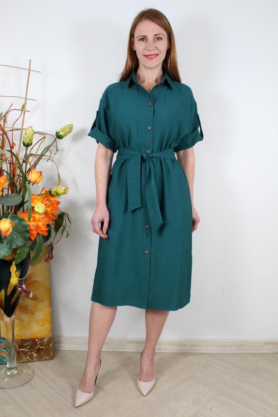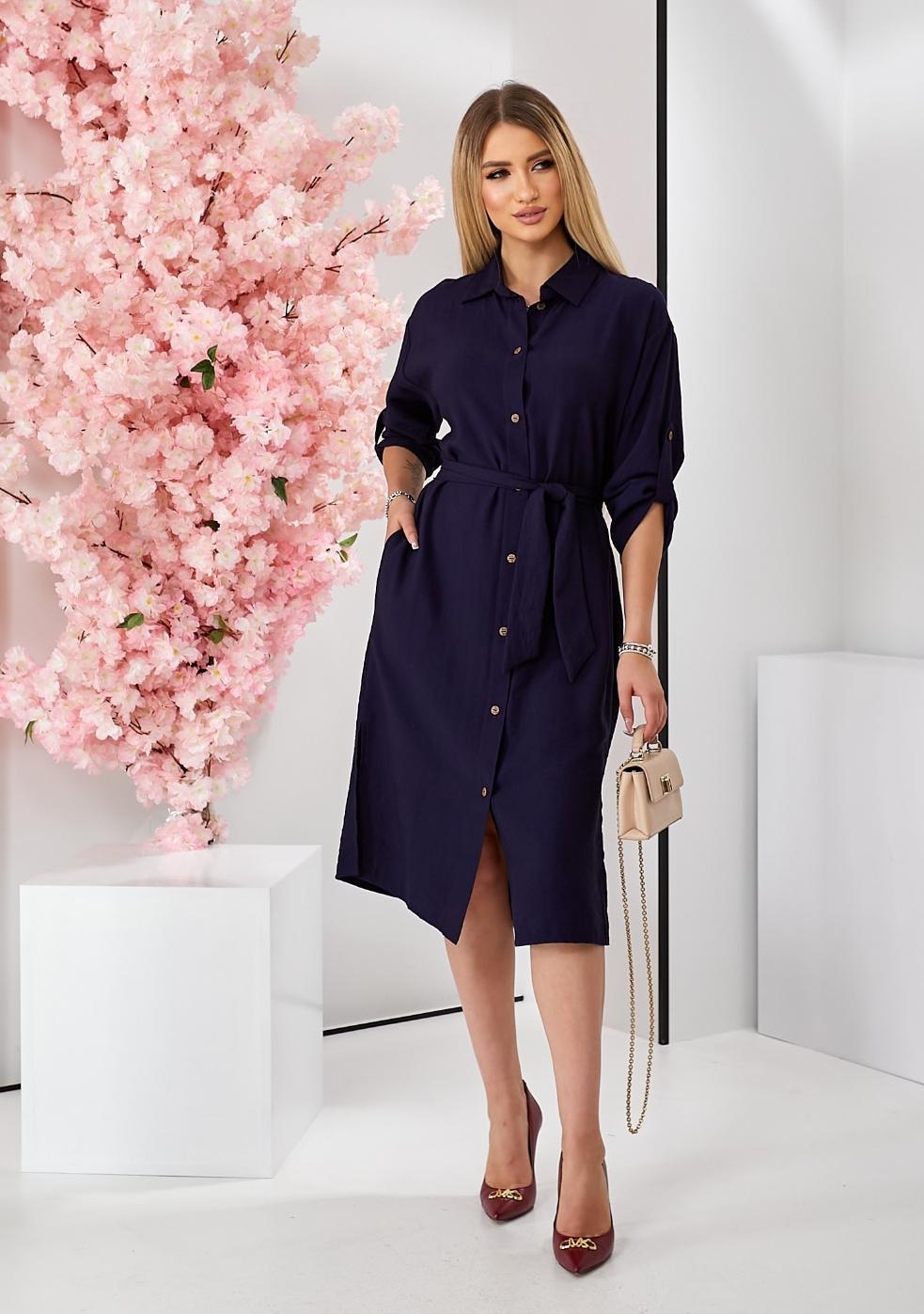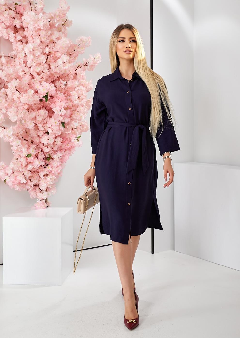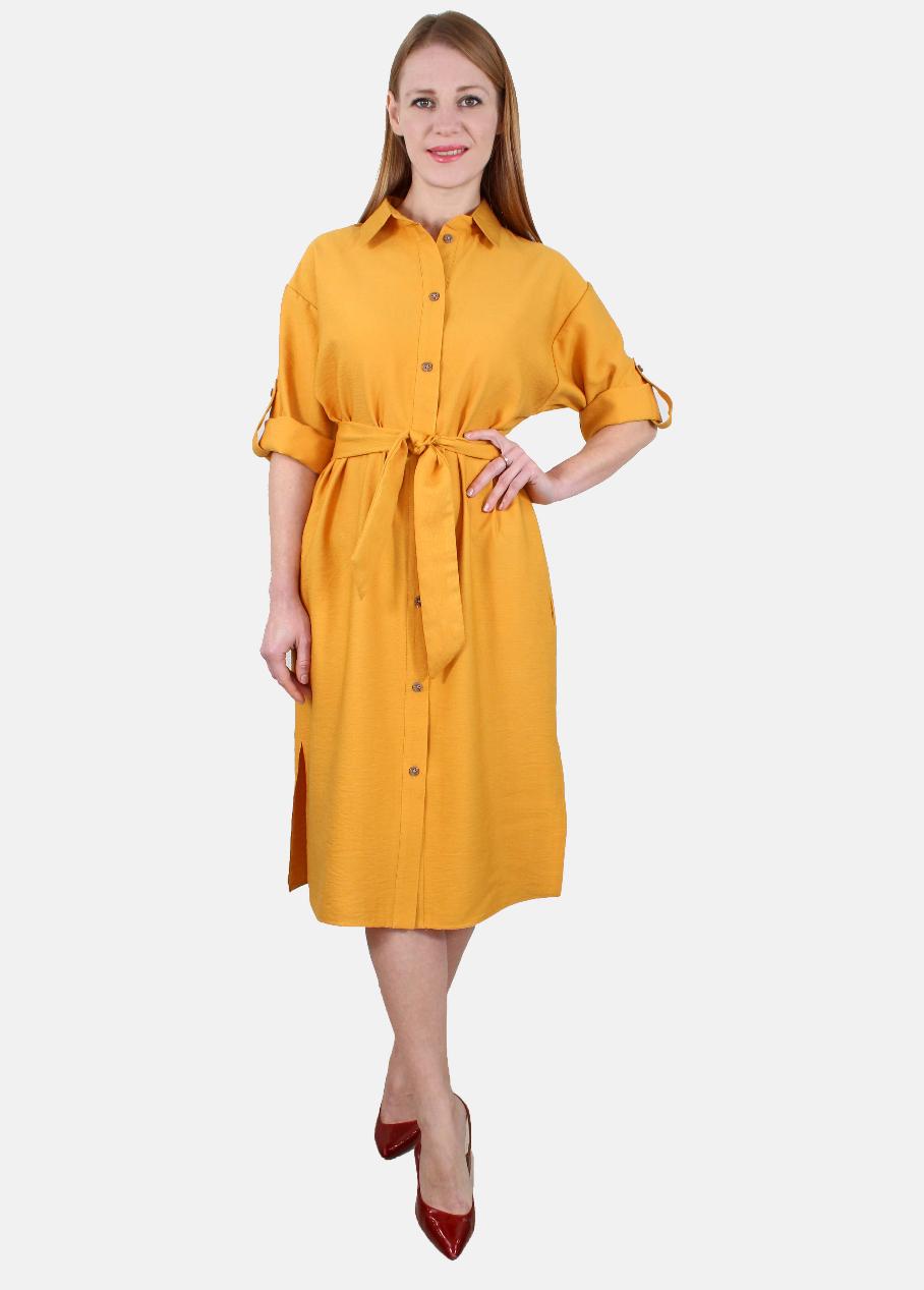 Платье-рубашка с разрезами и поясом оптом