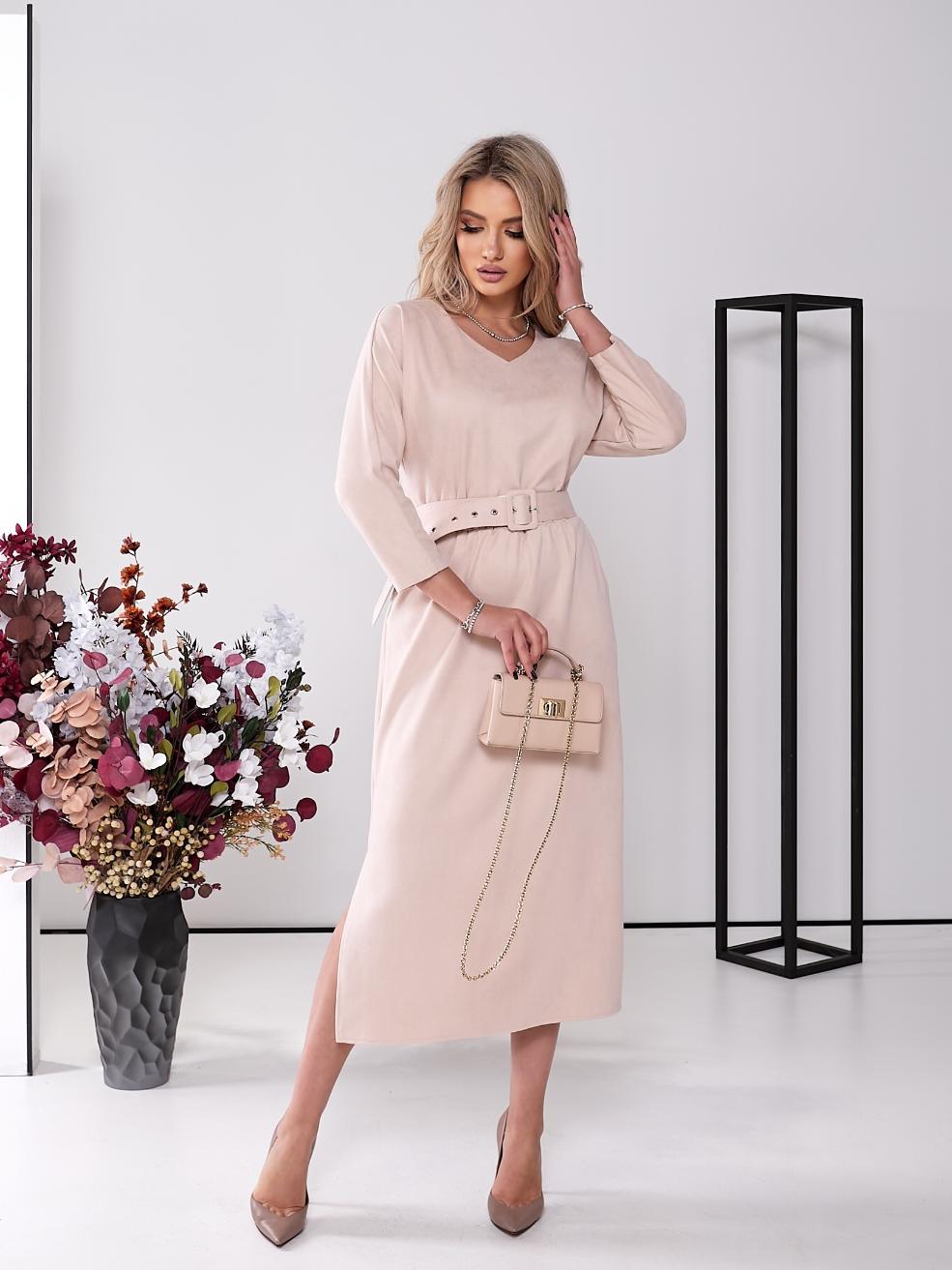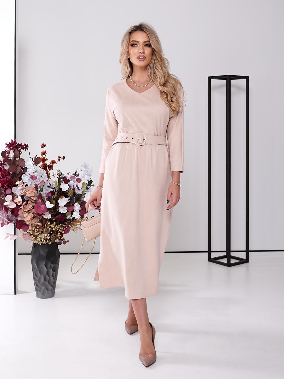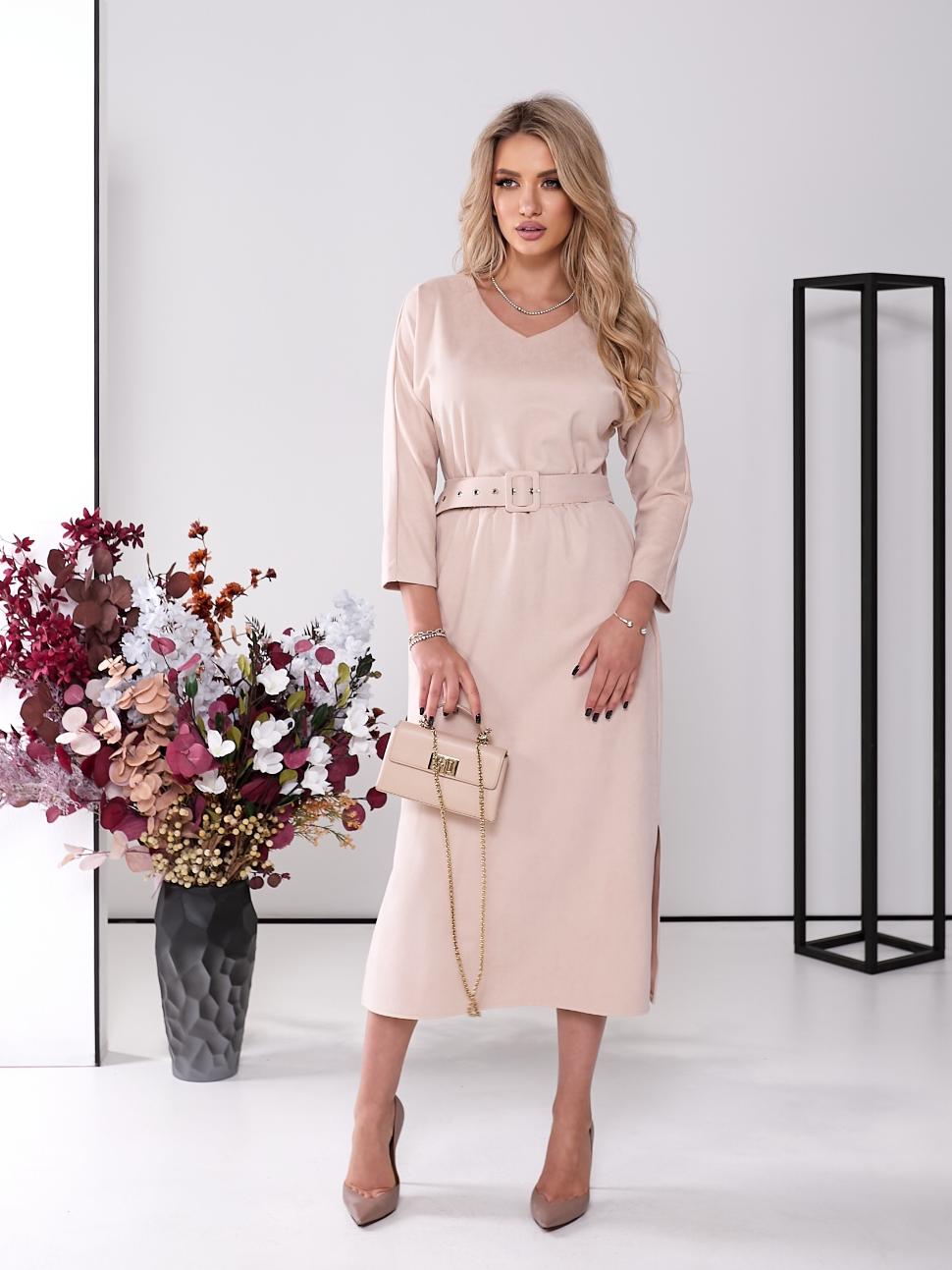 Женское платье прямое с поясом оптом