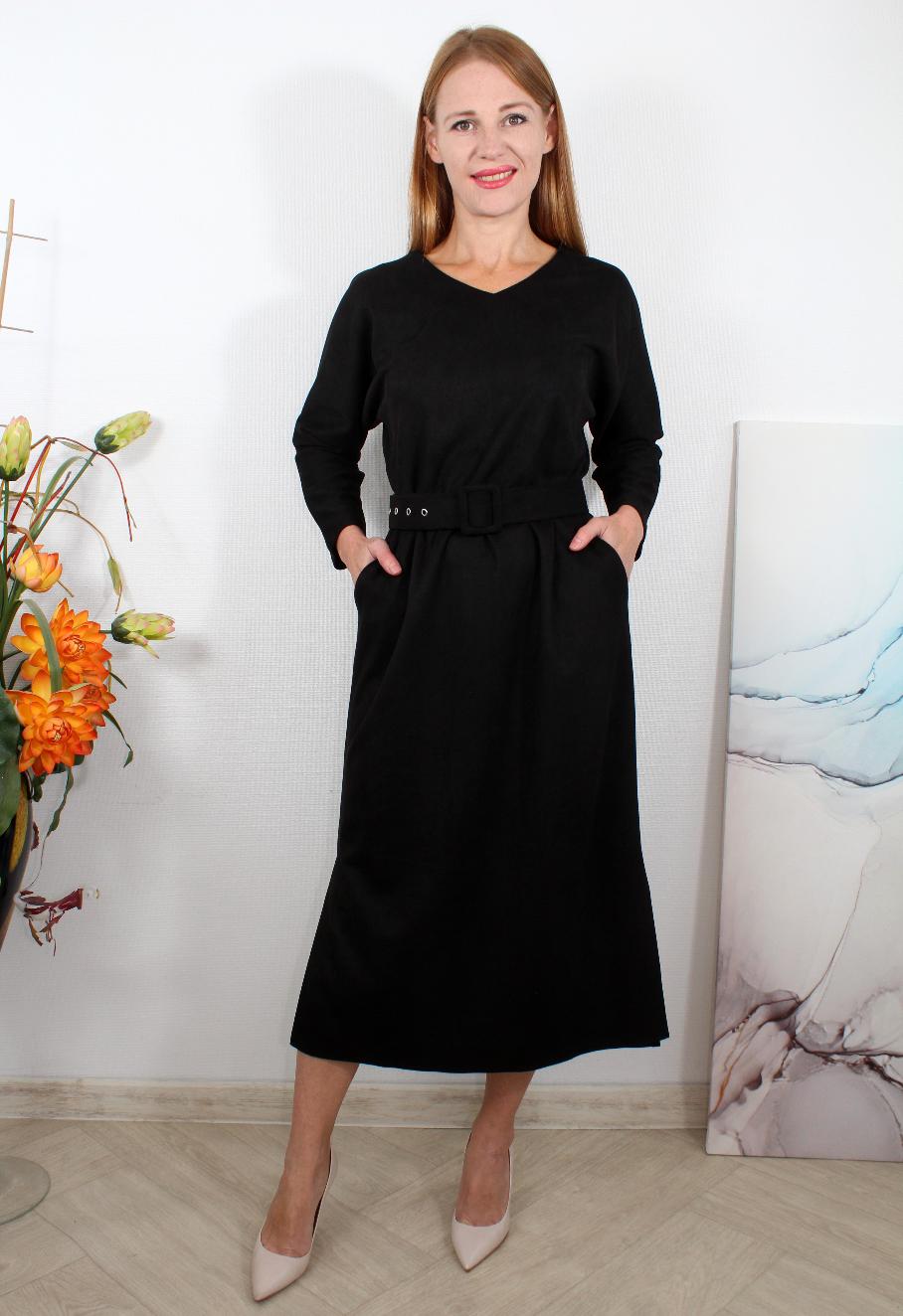 Женское платье прямое с поясом