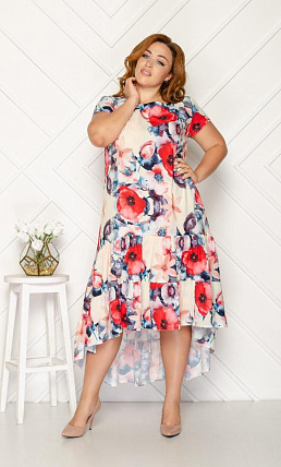 Платье асимметричное с принтом орхидеи оптом